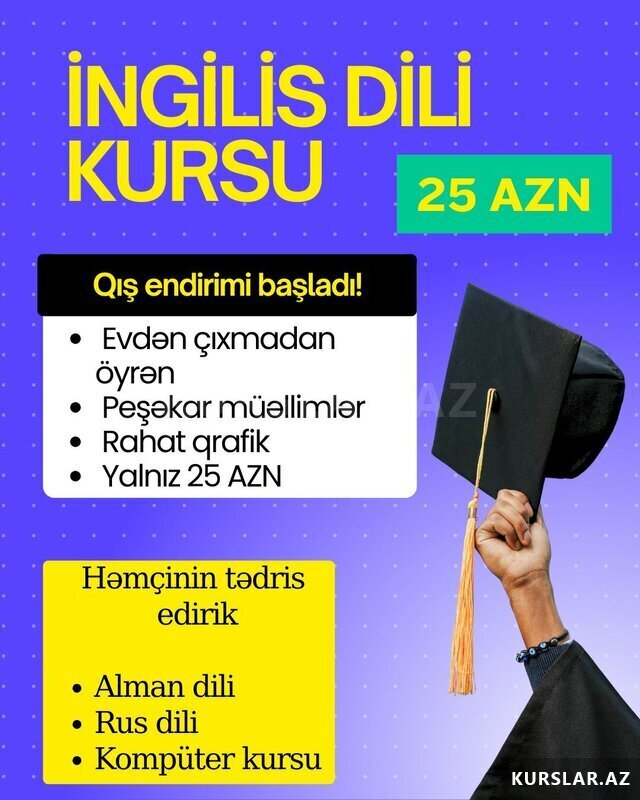 Şirkət30 Azn Qış endirimi başladı! İngilis dili onlayn dərslər - cəmi 25 AZN Təkcə ingilis dili yox! Rus dili dərsləri Alman dili dərsləri Kompüter kursları (0-dan öyrədilir) Peşəkar müəllimlər Tam onlayn dərslər Rahat və çevik