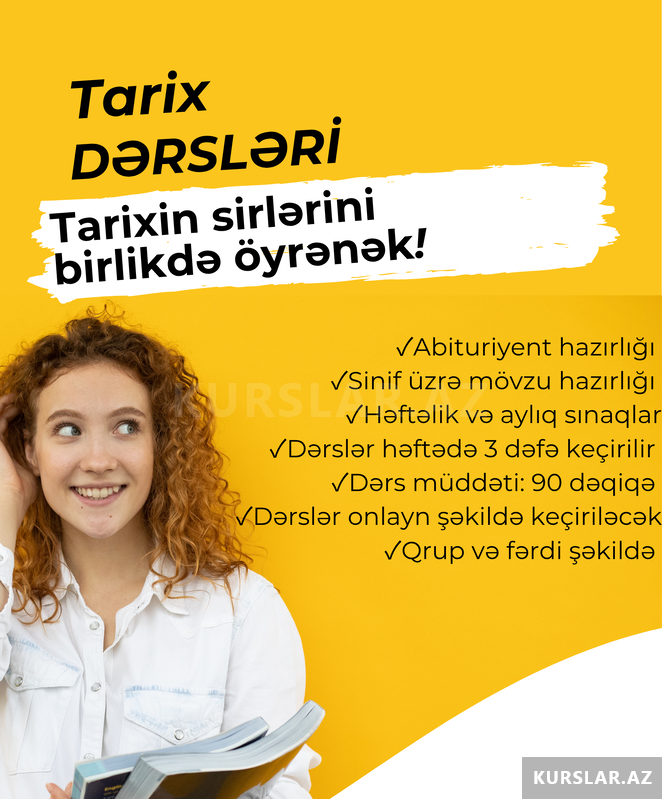 Şirkət40 Azn Tarix dərsləri həm online həm əyani kecirilir, 20illik staj, yüksək nəticə
