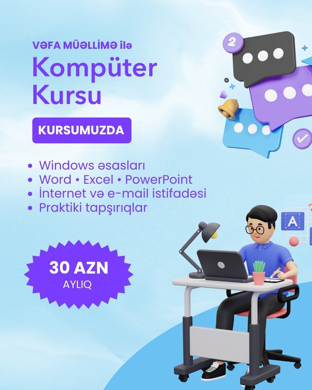 Kompüter kursları - Windows, Word, Excel, internet,