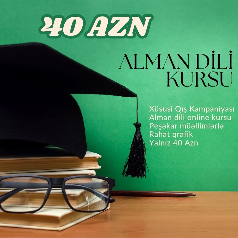 Şirkət40 Azn ALMAN DİLİ KURSLARI - İNDİ BAŞLA, SABAH DANIŞ! Alman dili öyrənmək istəyirsən amma haradan başlayacağını bilmirsən? Bizimlə həm asan, həm sistemli, həm də nəticəyə yönümlü şəkildə öyrən! Danışıq yönümlü proqram Sıfırdan