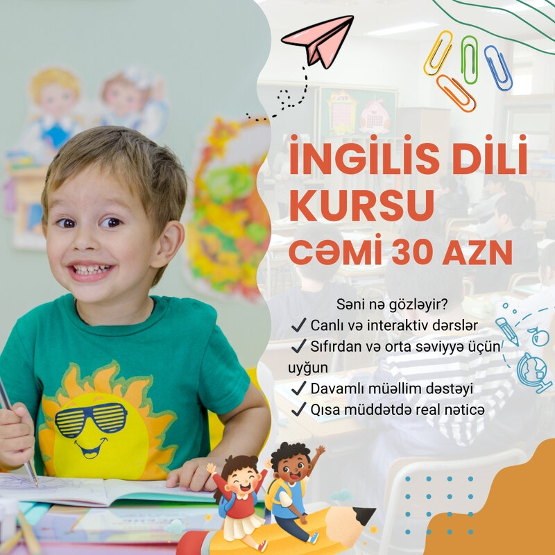 Şirkət30 Azn lman dili kursuna qeydiyyat başladı! Qrup dərsləri - 30 AZN Fərdi dərslər - 50 AZN Aylıq əlavə paket - 89 AZN Bundan əlavə kurslarımız: İngilis dili Rus dili Kompyuter kursları Məktəbəqədər hazırlıq Keyfiyyətli tədris,