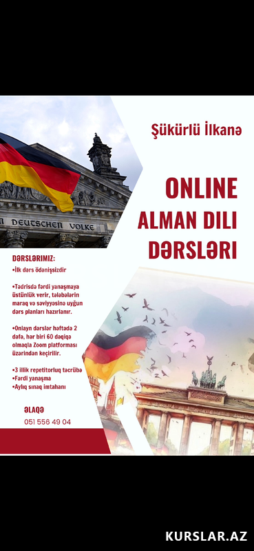 50 Azn Alman dili kursları. Kursumuzda Alman dili Sadə İzah şəkli ilə yüksək səviyyədə tədris olunur. Alman dilinin Qramatikası + Danışıq öyrədilir. Peşəkar və Məsuliyyətli müəllim komandası , 10 ildən artıq müəllimlik