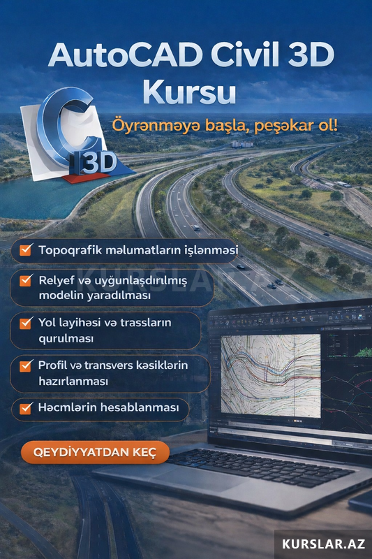 Bu kursda yol, ərazi relyef, həcm hesabları kimi biliklərə yiyələnmək olar