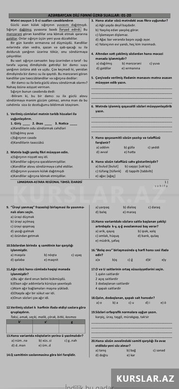 2-ci qrup üzrə; Azərbaycan dili, coğrafiya, riyaziyyat,