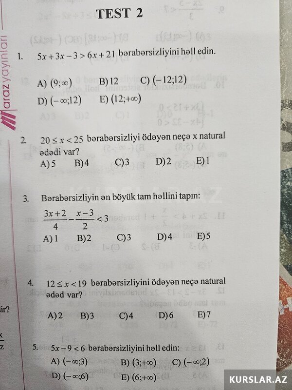 5.ödənişsiz hər ay sınaq, pdf, dərs