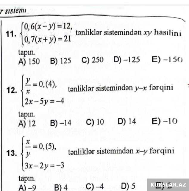 25 Azn 9, 10, 11-ci sinif Riyaziyyat Buraxılış Sürət Qrupu