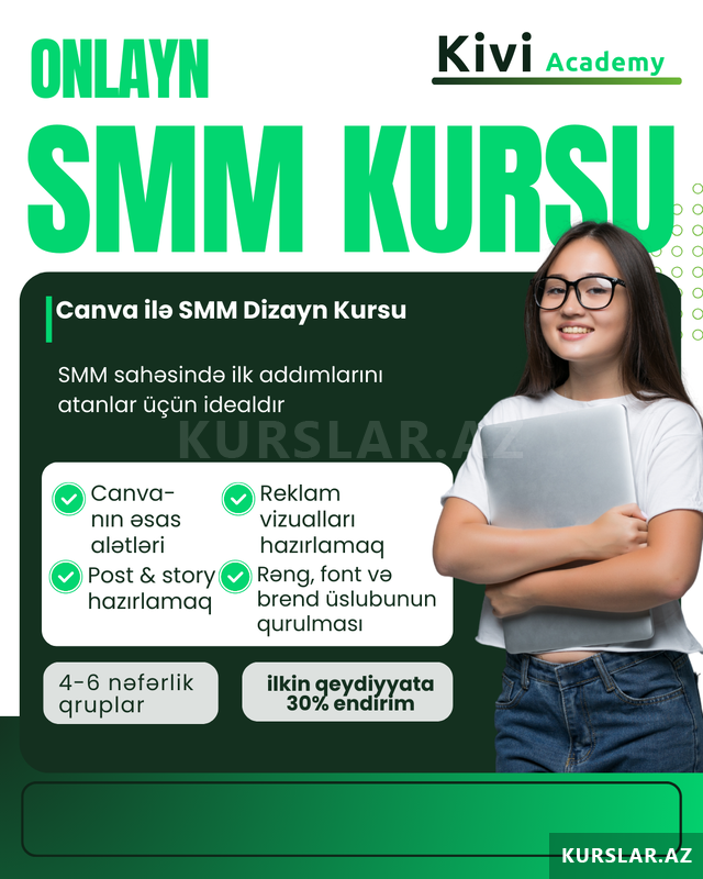 Əgər dizaynı sıfırdan öyrənmək, SMM üçün peşəkar görünən işlər hazırlamaq və bu bacarığı gələcəkdə istifadə etmək istəyirsənsə — bu kurs sənin üçün əla başlanğıcdır.