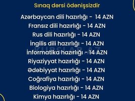 25 AznAlphabet, Vocabulary, Reading, Listining, Grammar kechirilir.Ibtidai sinifler uchunde hazirlig movcuddur .