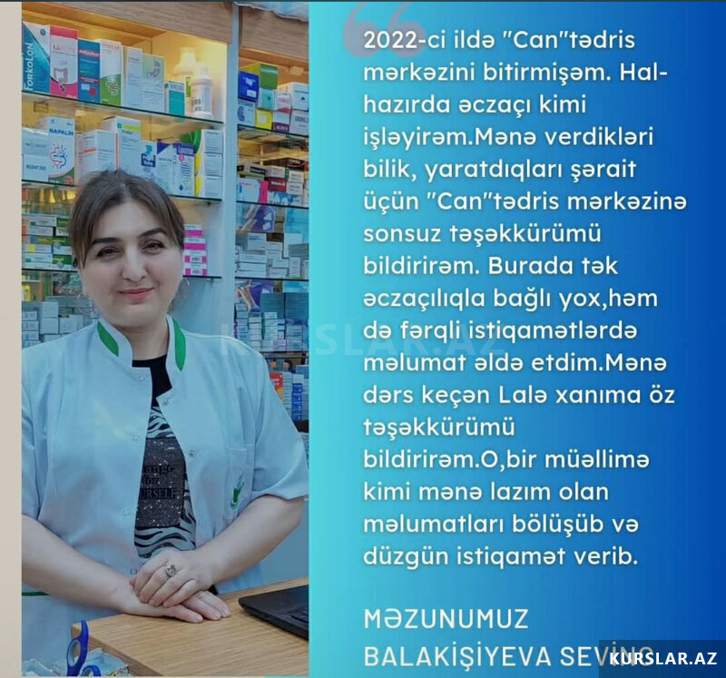 Gələcəyini sağlamlıq sahəsində qurmaq istəyirsən? Əczaçılıq sahəsində peşəkar biliklər əldə etmək üçün sən də bizim kursa qoşul!