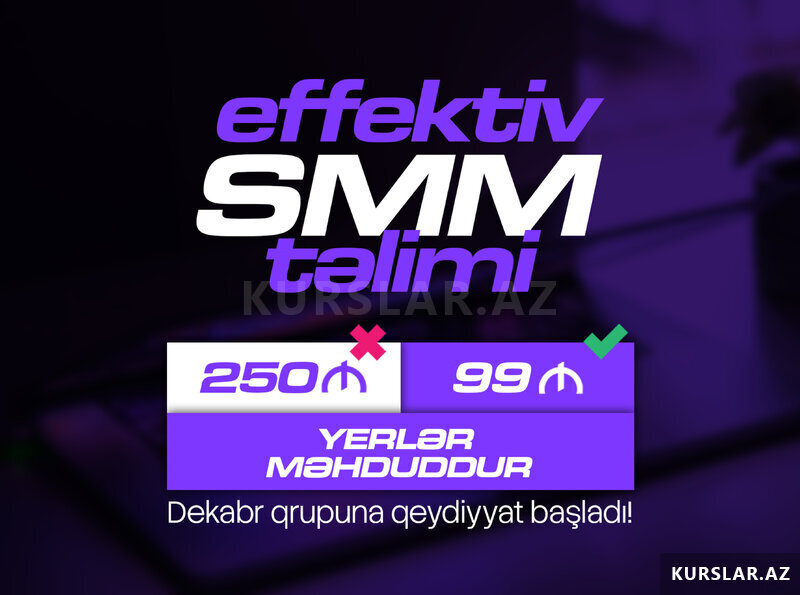 Dekabr Ayı SMM Təlimi (Sertifikatlı) – Qeydiyyat Açıqdır! Effektivliyə zəmanət verilir. Təlimi bitirənlər real layihələrə qoşula biləcək.