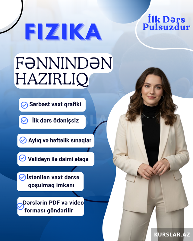20 Azn Dersler onlayn şəkildə keçirilir 0 dan derslere indi qoşul hər ay sınaq imtahanı edilir hem ferdi hem qrupla tədris