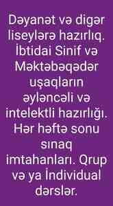 İbtidai sinif, 5-6-cı siniflər, Məktəbəqədər uşaqlar üçün hazırlıq keçirəm. İş təcrübəm var. Hazırlığa aiddir: Liseylərə Hazırlıq, Məktəbəqədər uşaqların intelektli və əyləncəli Hazırlığı, Gündəlik Dərslərin və ev tapşırıqlarının yerinə yetirilməsi.