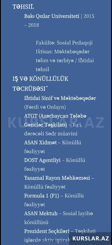 15+ illik pedaqoji təcrübə ilə şagirdlərinizin bilik və bacarıqlarını möhkəm təməl üzərində qururam.