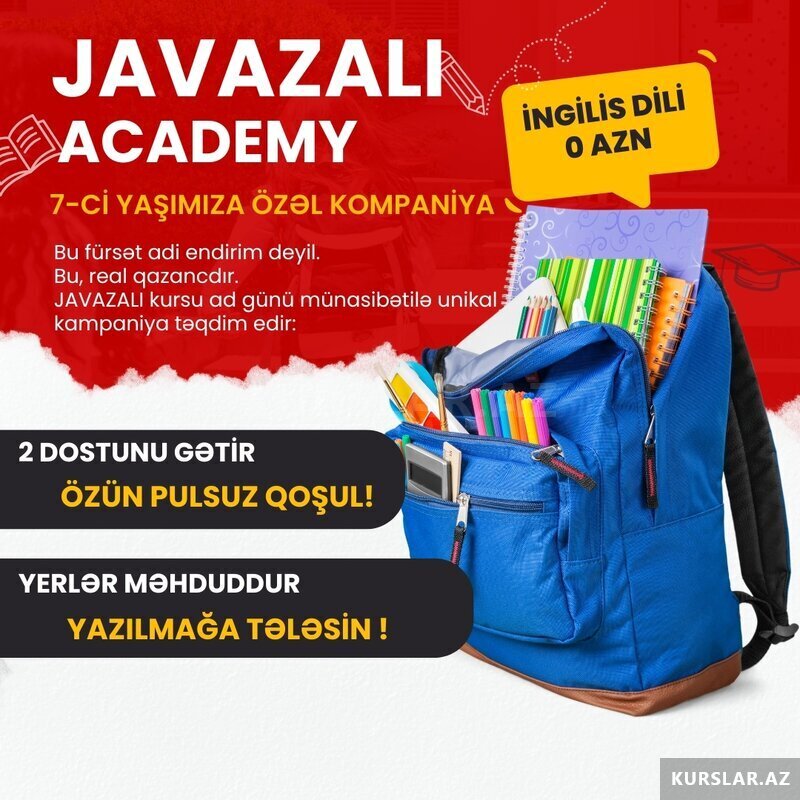 Şirkət30 Azn ELAN EDİLDİ! BÖYÜK ENDİRİM BAŞLADI! JAVAZALI ACADEMY sənə təhsilində sıçrayış təklif edir! Keyfiyyətli təhsil indi daha əlçatan! ENDİRİMLİ TƏDRİS PROQRAMLARI: General English IELTS & Cambridge Riyaziyyat Azərbaycan