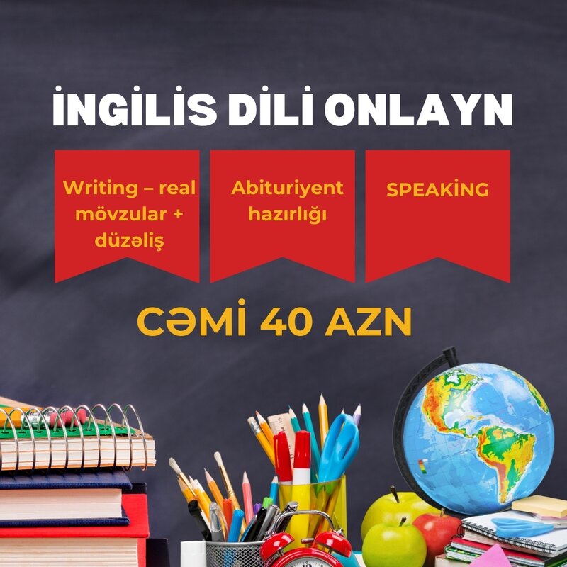 Şirkət30 Azn İngilis dili öyrənmək istəyirsən, amma vaxt problemi var? İngilis dili - ONLAYN QRUP Canlı və interaktiv dərslər Sıfırdan başlanır Danışıq + qrammatika + söz bazası birlikdə Təcrübəli müəllim izahı Ev tapşırıqları və