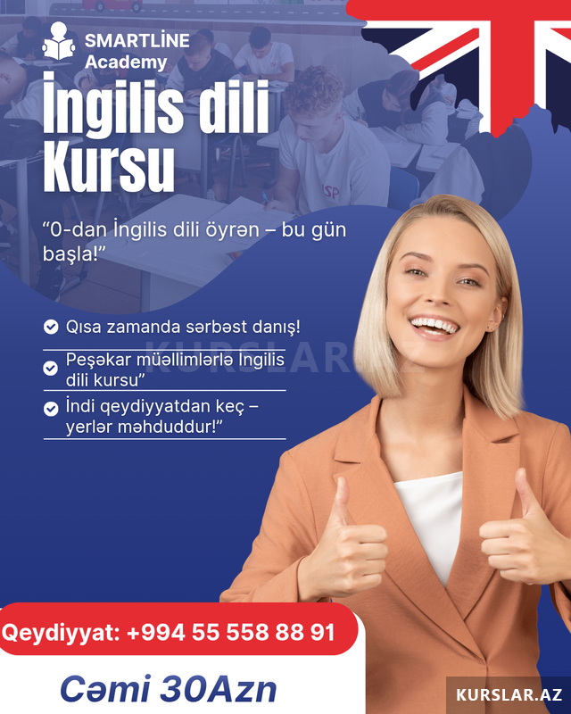 Şirkət30 Azn İngilis dili kurslarına qeydiyyat başladı! İngilis dilini tez və rahat öyrənmək istəyirsiniz? İndi tam fürsətidir! Onlayn Qrup Dərsləri - cəmi 30 AZN Fərdi Dərslər - cəmi 60 AZN Danışıq yönümlü dərslər Peşəkar