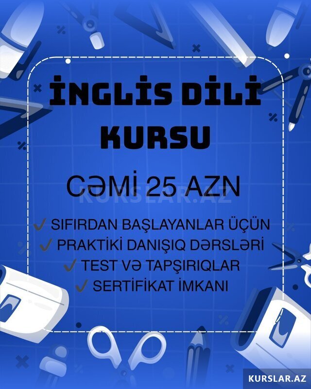 Şirkət50 Azn ONLAYN İNGİLİS DİLİ KURSU İngilis dilini 0-dan öyrənin, biliklərinizi inkişaf etdirin və rahat danışmağa başlayın! İngilis dili (onlayn) - 25 AZN (Danışıq, qrammatika və dinləmə bacarıqları) Peşəkar və təcrübəli