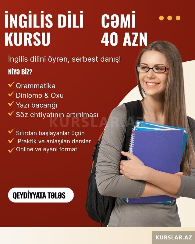 Şirkət30 Azn İngilis dilini öyrənmək istəyirsən, amma haradan başlayacağını bilmirsən? Artıq vaxt itirmə - SƏN də qısa zamanda danışa bilərsən! Bizim kursda: Dərslər sıfırdan izah olunur (tam anlayana qədər) Danışıq praktikasına