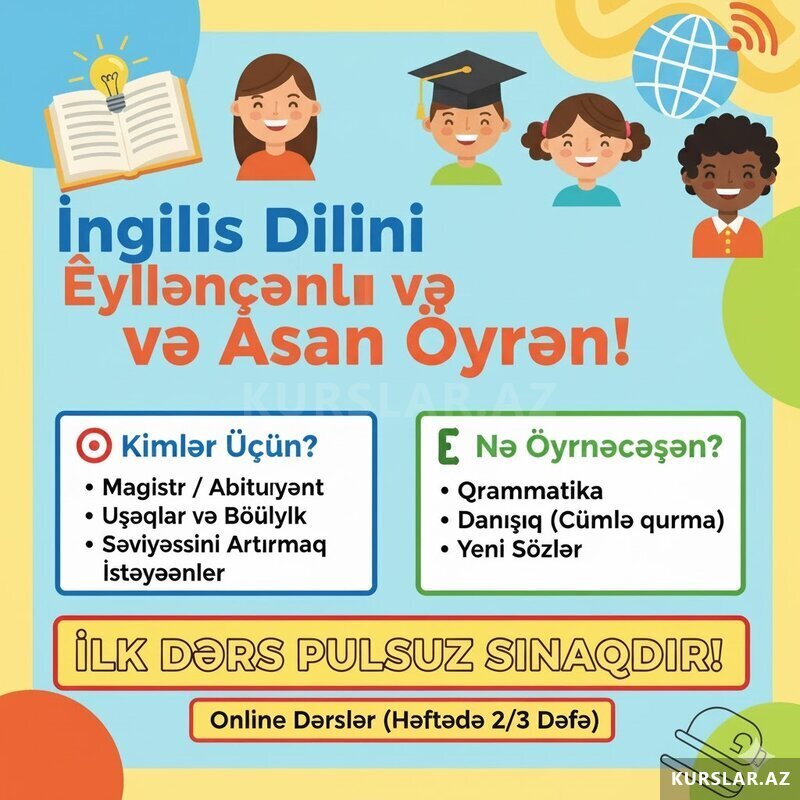 150 Azn 16 illik pedaqoji təcrübəmə əsasən Ingilis dilində onlayn hazırlıq dərsləri həmçinin danışıq dərsləri keçirəm. * Sinif sözlərinin öyrənilməsi, Vocabulary çalışmaları, idiomlar, frazeoloji birləşmələr *Qrammatik