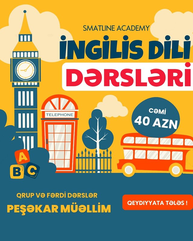 Şirkət40 Azn İngilis dili kurslarına qeydiyyat başladı! İngilis dilini tez və rahat öyrənmək istəyirsiniz? İndi tam fürsətidir! Onlayn Qrup Dərsləri - cəmi 30 AZN Fərdi Dərslər - cəmi 60 AZN Danışıq yönümlü dərslər Peşəkar