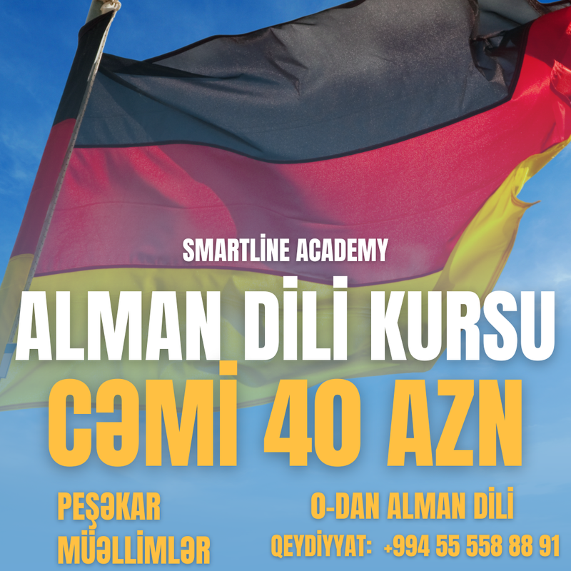 Şirkət40 Azn ALMAN DİLİ KURSLARI - İNDİ BAŞLA, SABAH DANIŞ! Alman dili öyrənmək istəyirsən amma haradan başlayacağını bilmirsən? Bizimlə həm asan, həm sistemli, həm də nəticəyə yönümlü şəkildə öyrən! Danışıq yönümlü proqram Sıfırdan