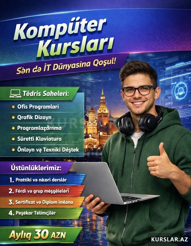 Şirkət30 Azn KOMPÜTER KURSU - SIFIRDAN PEŞƏKAR SƏVİYYƏYƏ