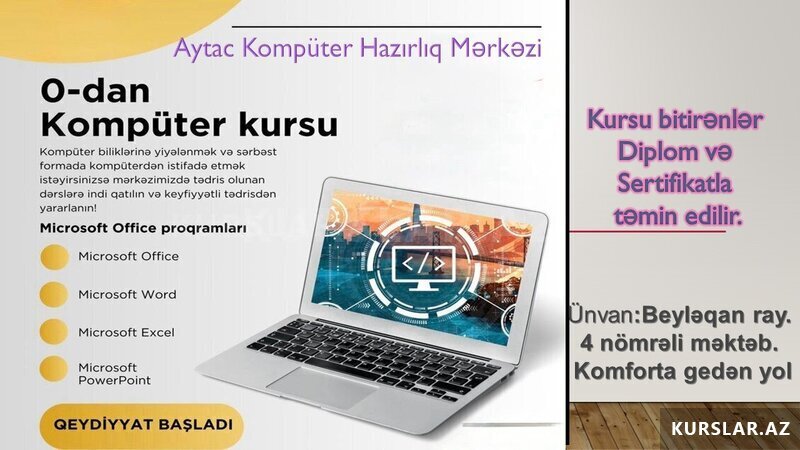 0-dan başlayaraq tam professional səviyyədə kompüter kursunun tədrisi.