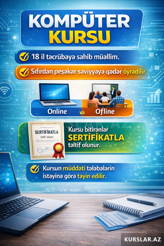 Şirkət70 Azn KOMPÜTER KURSU – SIFIRDAN PEŞƏKAR SƏVİYYƏYƏ