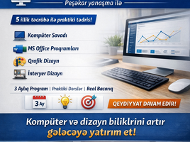 Şirkət130 Azn Professional kompüter hazırlığına qeydiyyat başladı. 3 və 6 ay ərzində kompüter proqramları sıfırdan, mükəmməl şəkildə öyrədilir. Sonda isə RƏSMİ SERTİFİKAT verilir. Həmçinin, fərdi və qrup dərslər, əyani və onlayn