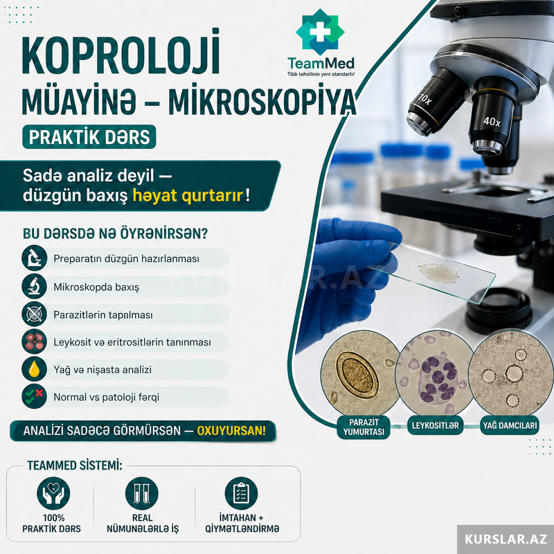 Bu kurs sənə real laboratoriyada lazım olan praktik mikroskopiya bacarıqlarını öyrədir.