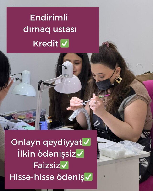 Şirkət Dırnaq Kursu - ENDİRİMLƏ! Gözəllik sahəsində peşəkar olmaq istəyənlər üçün əla fürsət! Böyük ENDİRİM kampaniyası Kredit imkanı - bütün kartlar keçərlidir İlkin ödənişsiz qeydiyyat Faizsiz hissə-hissə ödəniş Onlayn