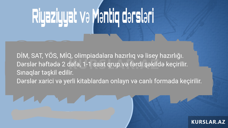 Matematik YÖS hazırlığı. Əlavə olaraq riyaziyyat DİM və Məntiq hazırlığı. Liseylərə hazırlıq. Canlı və online formada