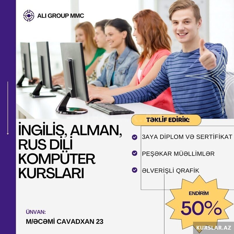 Şirkət30 Azn 3 AYA ÖYRƏN - İNDİ BAŞLA! TƏDRİS OLUNAN KURSLAR İngilis dili (onlayn) - 25 AZN Rus dili (onlayn) - 30 AZN Alman dili (onlayn) - 30 AZN Kompüter kursu (onlayn) - 30 AZN Qrup əyani dərslər - 50 AZN Fərdi dərslər - 89