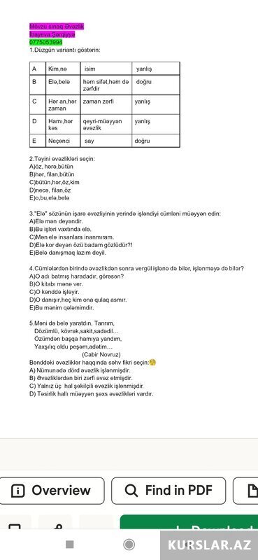 Dərslərdə mövzular sadə və aydın şəkildə izah olunur, testlərlə möhkəmləndirilir.