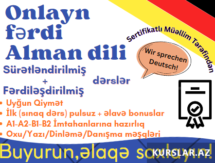Tez bir zamanda alman dilində danışmağı bacarmaq istəyənlər üçün çox uyğun qiymətə, sürətləndirilmiş və fərdiləşdirilmiş dərslər keçirəm. A1-A2-B1-B2 imtahanları üçün hazırlığa da kömək edirəm.