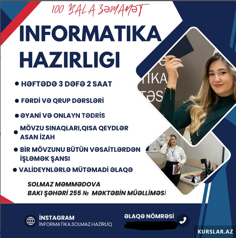 50 Azn Məktəblilər və abituriyentlər üçün Riyaziyyat və İnformatika dərslərinə qeydiyyat davam edir. Dərslər peşəkar müəllim tərəfindən keçirilir. 15 illik təcrübə və 1000+ nəticə.