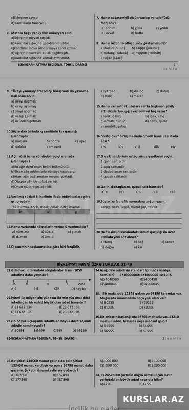 20 Azn İstənilən 3 fənn paketi 60 azn deyil 45 azn,
