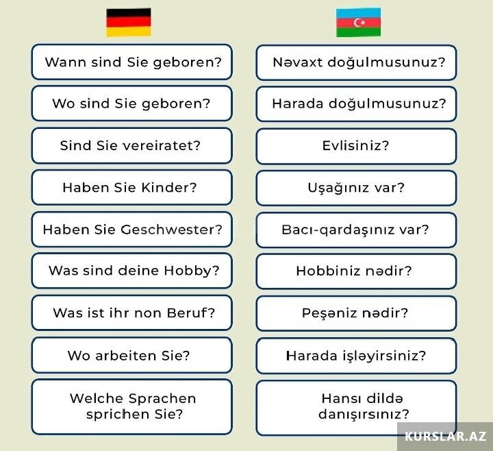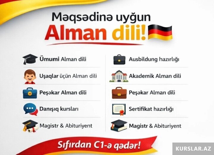 Salam, Online İngilis və Alman dili (Danışıq, Qrammatika, İmtahanlara hazırlıq) və Alman dili (Ausbildung, Danışıq, Qrammatika, İmtahanlara hazırlıq )dərsləri tədris edilir.