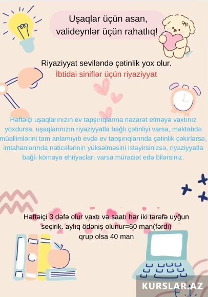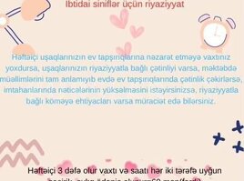 30 Azn Uşaqlarınızın Azərbaycan dili və Riyaziyyat dərslərində ev tapşırıqlarının izahı və dərslik üzrə izahlı dərs