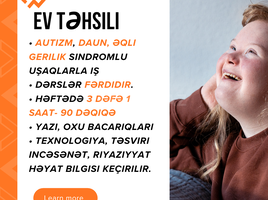50 Azn Uşağınızın məktəbə hazırlığını təmin edin! Məktəbəqədər və ibtidai sinif şagirdləri üçün fərdi və qrup dərsləri Həftədə 4–5 dəfə, hər dərs 1 saat 30 dəqiqə Oxuma, yazma, riyaziyyat və ümumi inkişaf bacarıqları Ev