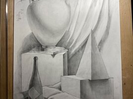 Rəsm, natürmort, işıq-kölgə , boya texnikaları öyrənmək. Gips portretinin qurulması .
