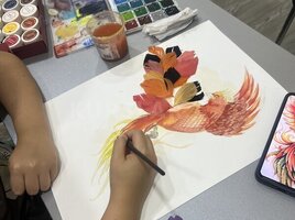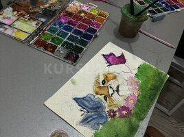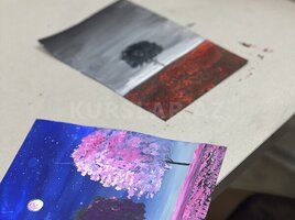 Boya texnikaları-Akvarel(sulu boya), quaş, yağlı boya - kətan üzərində iş, akril boya ilə çəkmək öyrədilir.