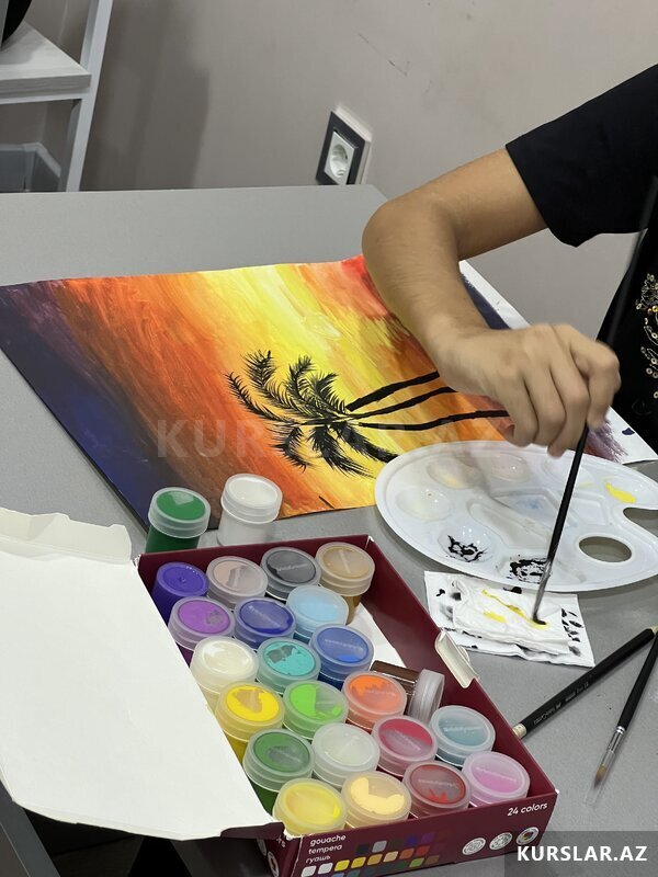 Uşaqlar və məkətəblilər eləcə də böyüklər üçün rəssamlıq kursları.