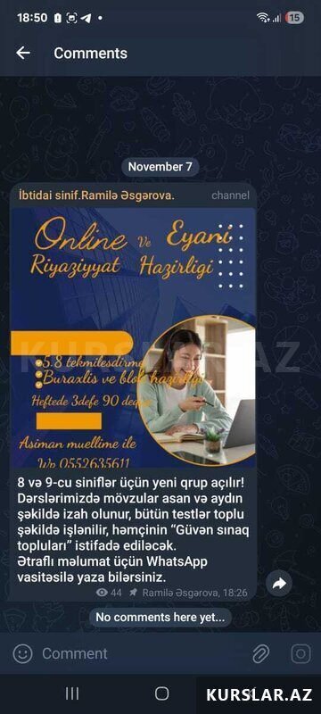 8ve 9 lar ucun yeni qrup.acilir heftede 2 defe olmaqla toplu guven movzu sonu sinaqlar umumi sinaqlar islenecek