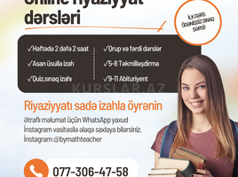 60 Azn İstənilən riyaziyyat bazası olan şagirdlərə daha asan üsulla riyaziyyat dərsləri təsris olunur.Dərslər onlinedır. İlk dərs sınaq dərsidir və ödənişsizdir. Daha ətraflı məlumat üçün yaza bilərsiniz.