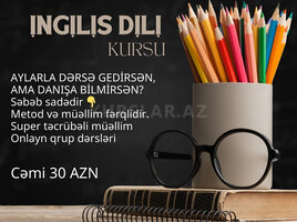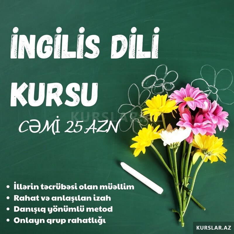 Şirkət30 Azn ONLAYN İNGİLİS DİLİ KURSU İngilis dilini 0-dan öyrənin, biliklərinizi inkişaf etdirin və rahat danışmağa başlayın! İngilis dili (onlayn) - 25 AZN (Danışıq, qrammatika və dinləmə bacarıqları) Peşəkar və təcrübəli