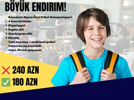 Şirkət30 Azn Ramazan fürsətini qaçırma! Bu mübarək ayda həm özünə, həm övladına investisiya et 1 fənn yazıl - 2-ci fənn BİZDƏN HƏDİYYƏ! Sadəcə 60 AZN ödəyərək əlavə dərsi ödənişsiz əldə et! Seçim sənindir: İngilis dili Rus