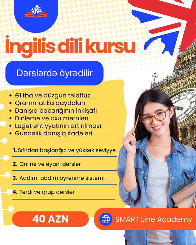 Şirkət30 Azn İngilis dili öyrənmək istəyirsən, amma vaxt problemi var? İngilis dili - ONLAYN QRUP Canlı və interaktiv dərslər Sıfırdan başlanır Danışıq + qrammatika + söz bazası birlikdə Təcrübəli müəllim izahı Ev tapşırıqları və