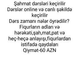 30 AznŞahmatı daha sistemli və məntiqli şəkildə öyrənmək istəyənlər üçün azərbaycan və ingilis dillərində onlayn dərslər keçirirəm. Fərdi və qrup formatında təşkil olunan məşğələlər yeni başlayanlar və orta səviyyəli