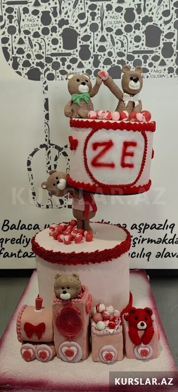 Şirkət80 Azn Şirniyyat və tortların dekoru kursu Həftədə 2 dəfə 150 dəqiqə dərs Tədris peşəkar ustalar tərəfindən keçrilir. Tort dekorlarına aid hərbir detal və şirniyyatların hazırlanması texnologiyası tam olaraq öyrədilir.Elavə
